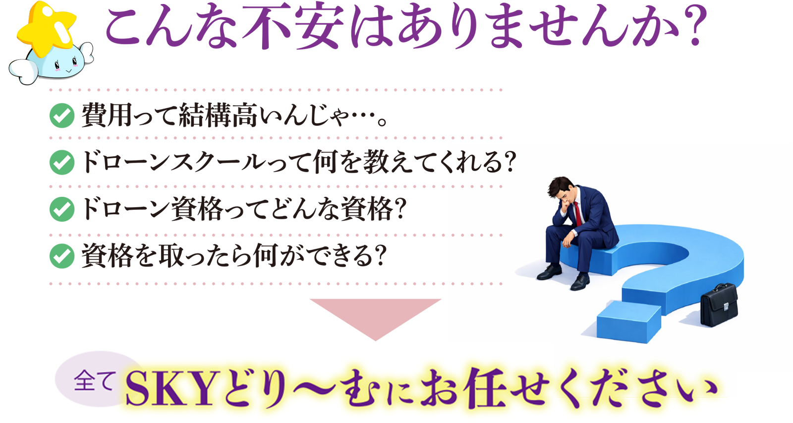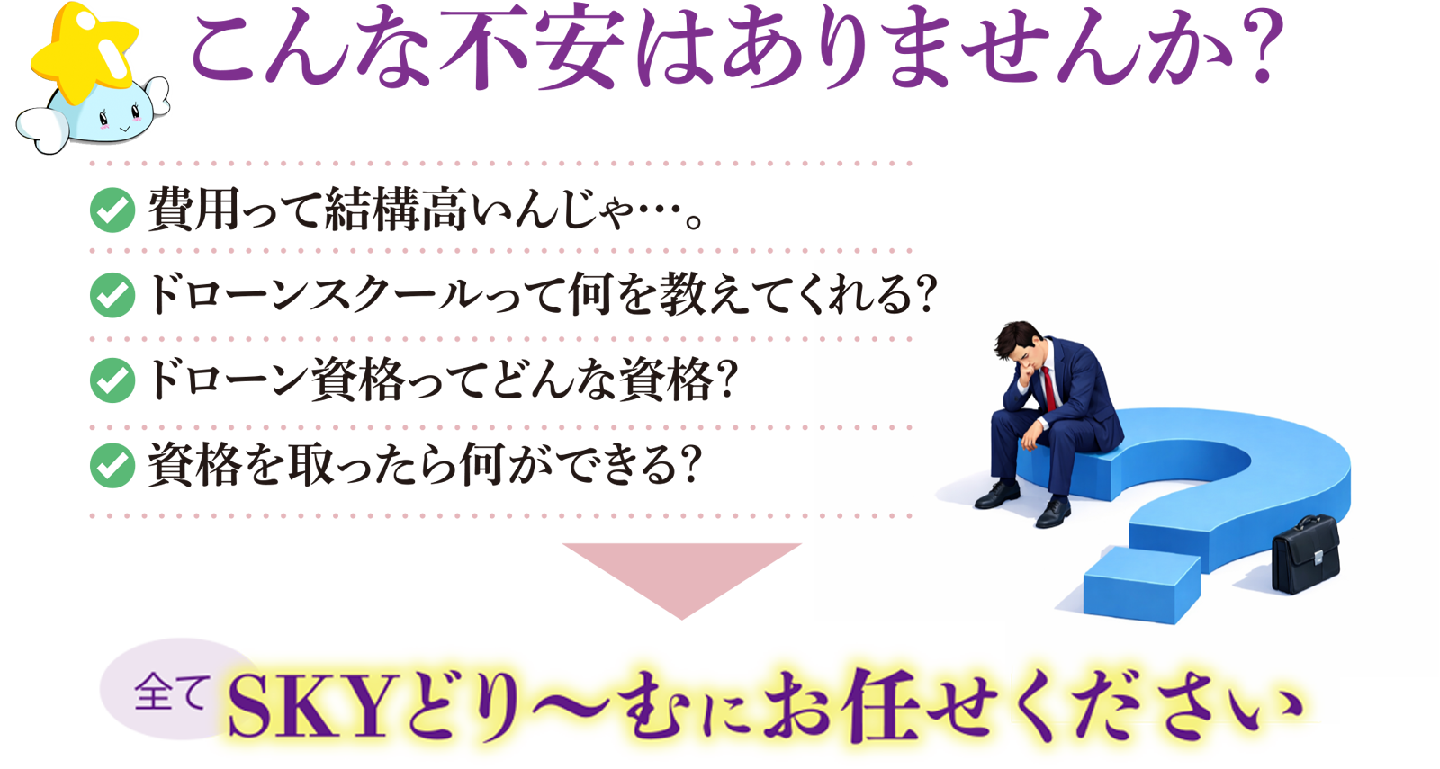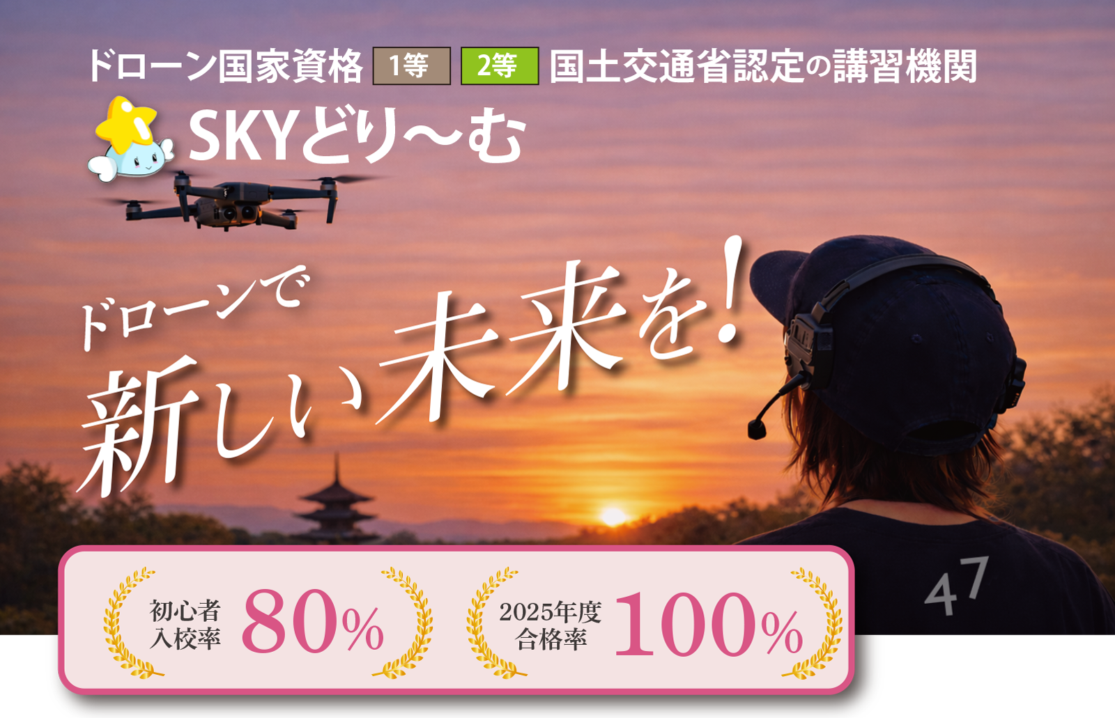 全てが一等無人航空機操縦者技能証明を取得し、経験豊富な実績と年数で、着実合格の道までご案内いたします。