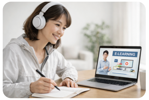 家事やお仕事で予定がつきにくい場合は、スキマ時間に学べるeラーニングもご用意しています。
