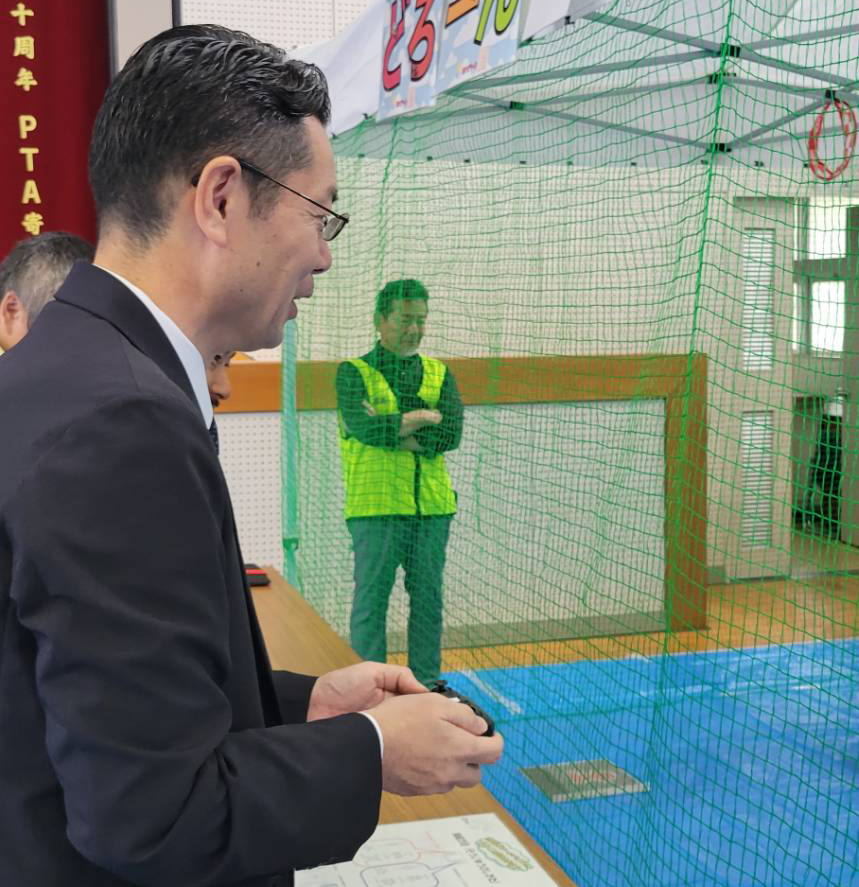 当日は広陵町の町長さんもお見えいただき、実際にドローン飛行をお楽しみいただきました。
