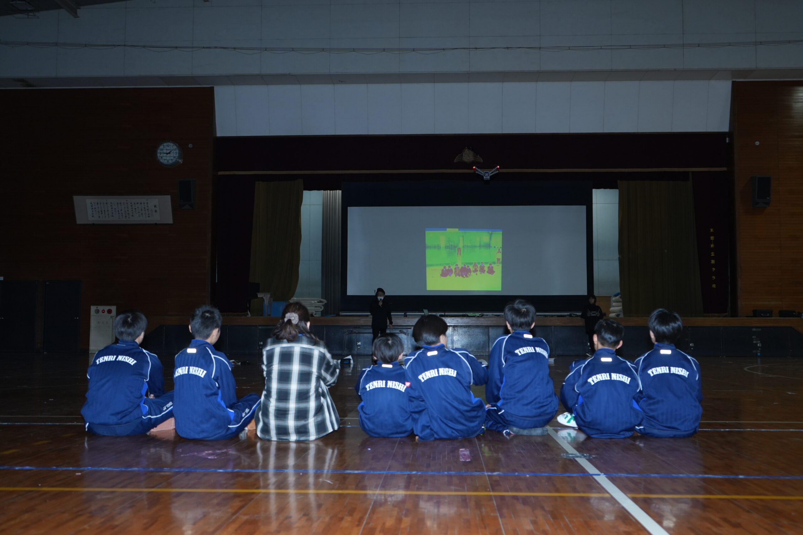 市内の中学校で赤外線ドローンの機能を体験していただきました。