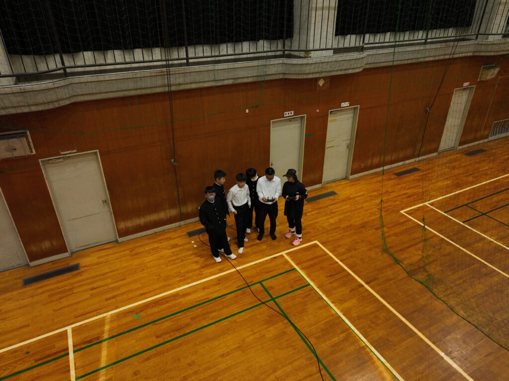 実際に生徒さんを空撮した映像をプロジェクターで再生してその性能を感じていただきました。