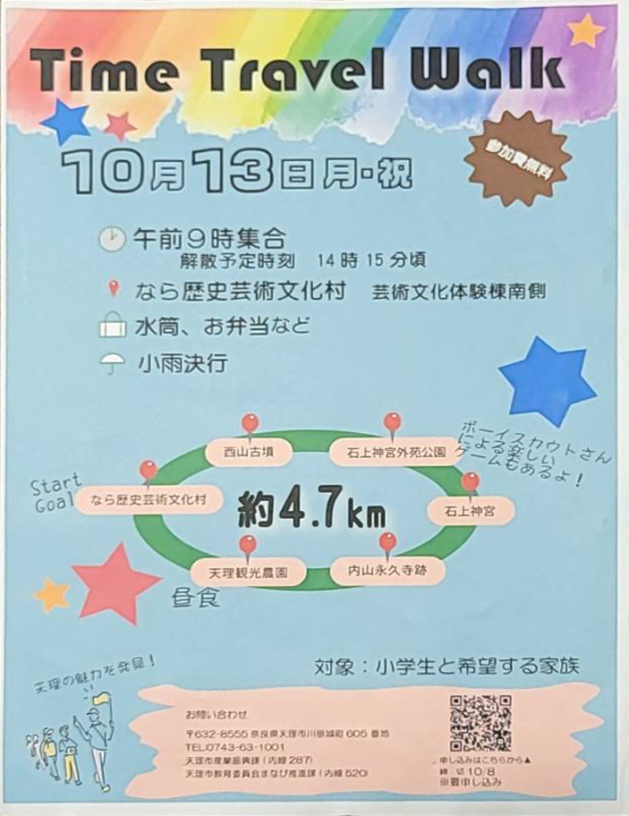 奈良の歴史を肌で感じながらいろんなことを学んでいきます。西山古墳、石上神宮外苑公園、石上神宮、内山永久寺跡を巡ってゴール!